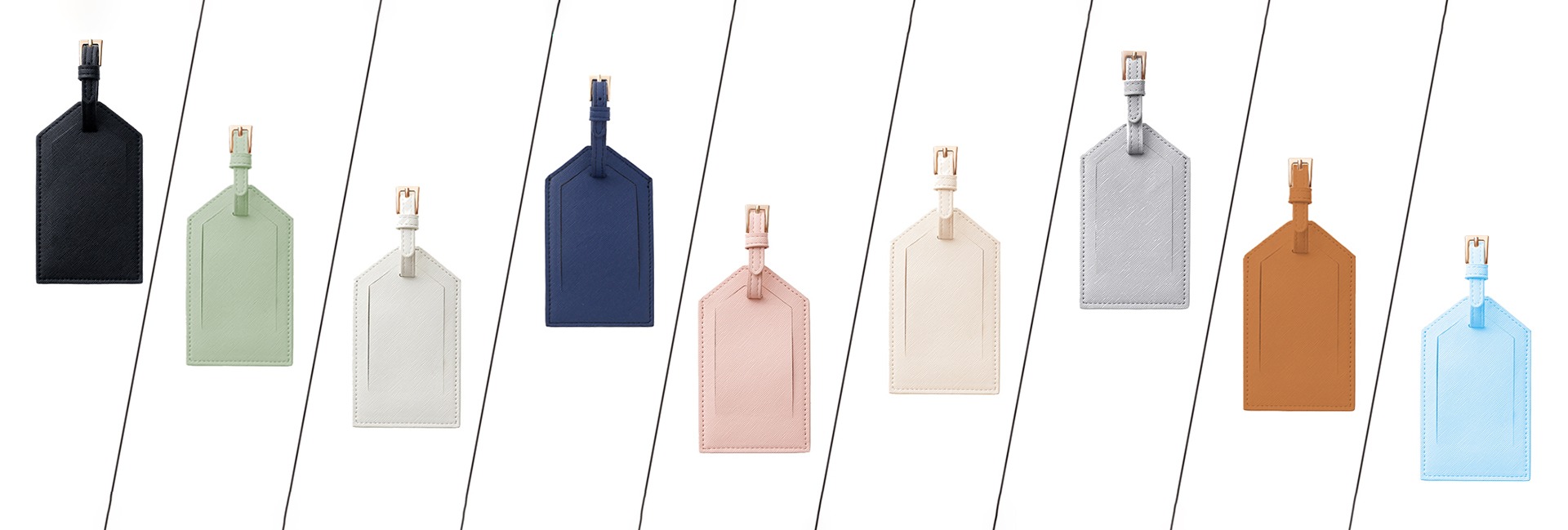 Etiqueta de equipaje de viaje de cuero pu saffiano con logotipo personalizado de alta calidad