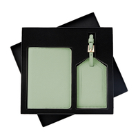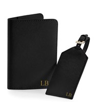 Ensemble étiquette de bagage et porte-passeport en cuir Saffiano avec boîte d'emballage